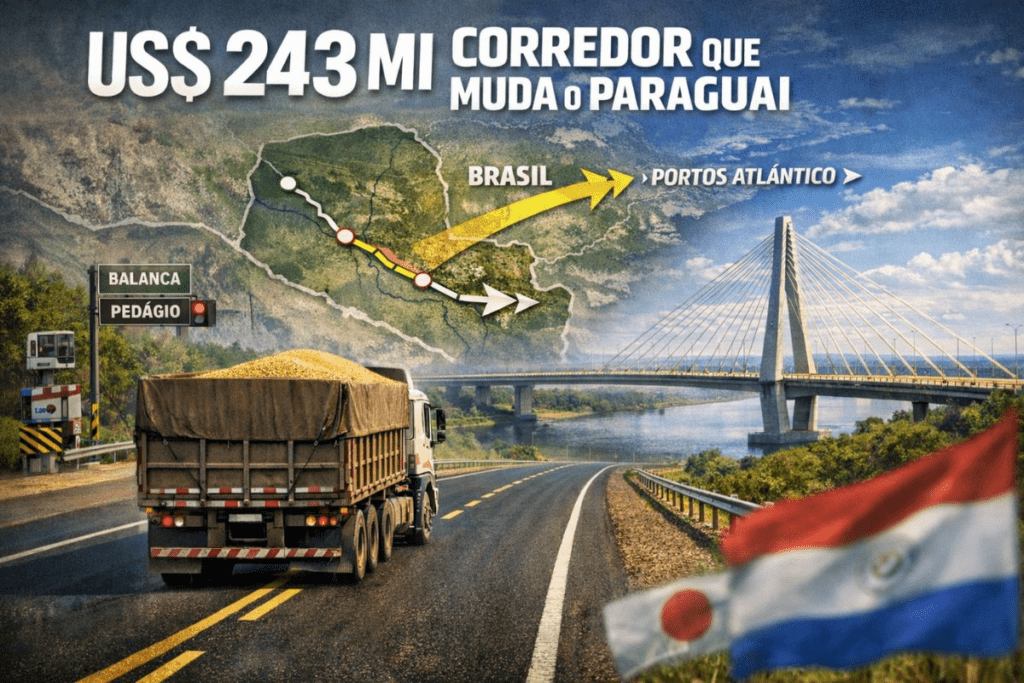 Paraguai e Japão fecham acordo de 243 milhões de dólares para financiar um corredor estratégico no sul do país, ligando regiões isoladas aos portos do Brasil e ao Atlântico em uma única espinha dorsal logística.